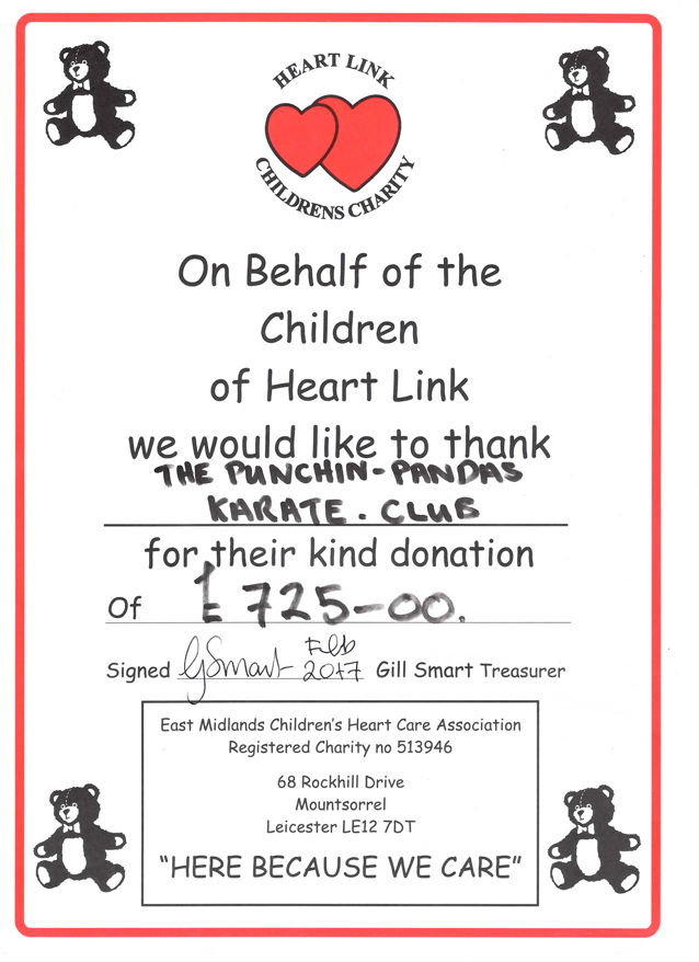 Thank you to everyone who took part in our charity kata competition ,we raised £1450 for Cancer Research and Heart Link. Pictured is Mick Dainty wife Mary collecting the cheque recently at our Thursday evening Ise pavilion class.