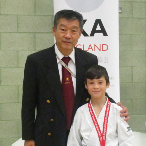 Well done to Denis Barna pictured who won gold for individual kata and bronze in kumite and was also lucky to meet Ohta Sensei. Great work by Dylan Hughes who won Silver in the boys under 13yrs kata.