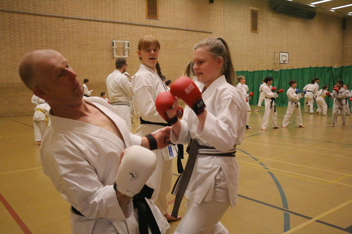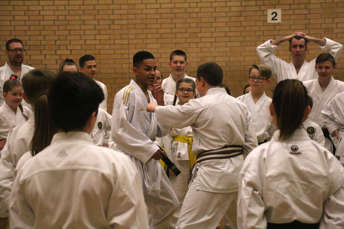 Before the second session, Jordan held a Q & A session and talked in depth about his inspiring karate journey, from a four year-old all the way to achieving the title of world champion. The second session included some excellent kicking and punching drills, and an opportunity to watch Jordan demonstrate his speed and skill. This really showed the students, both young and not so young, the level that can be reached with hard work and commitment.